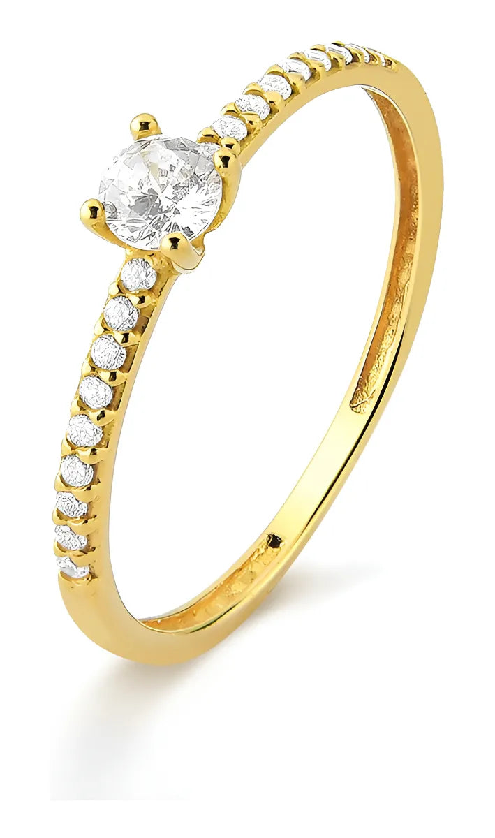Anel Solitário Aliança Zircônias Cravejadas Ouro 18k